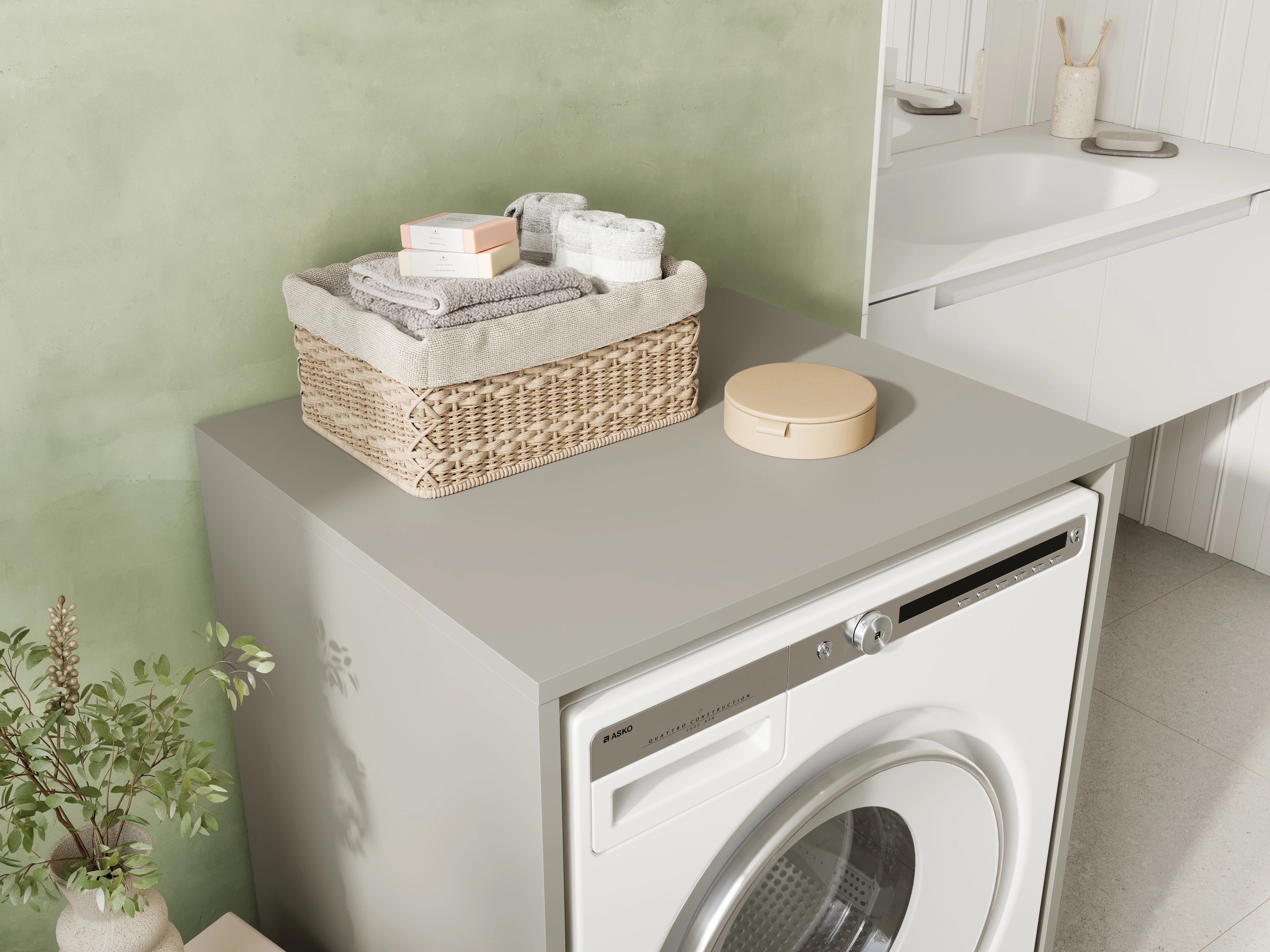 La carcasa LORELEI te proporciona espacio adicional para accesorios, productos de limpieza o toallas. La superficie superior es perfecta para doblar la ropa o almacenar objetos pequeños. ¿Quieres un baño práctico y armonioso? Combínala con otros muebles de la colección LORA y crea la solución de almacenamiento ideal para tu lavadora.