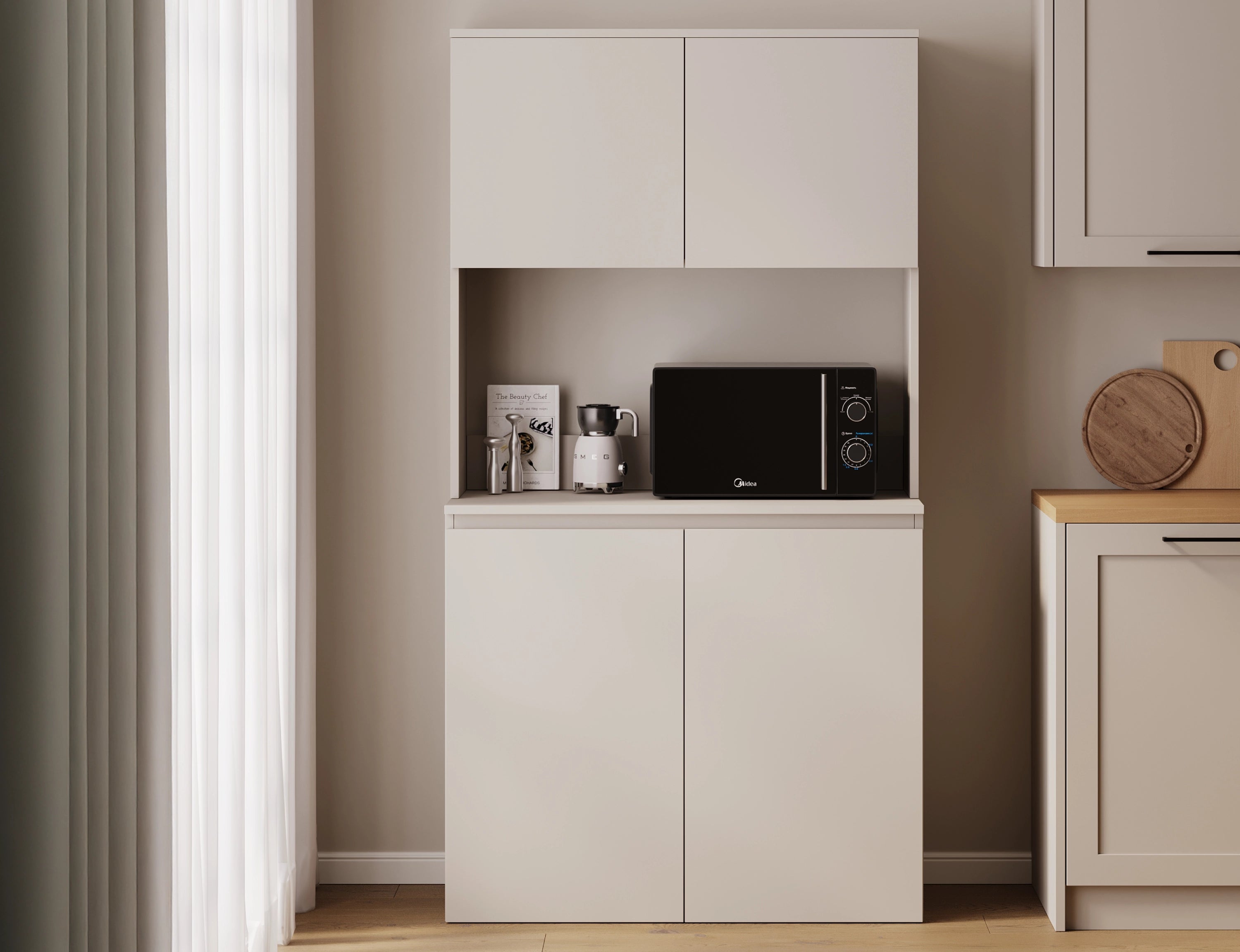 Le buffet de cuisine Ester est la proposition idéale pour les amateurs de solutions simples mais élégantes. La finition mate, associée à l'absence de poignées, souligne la forme simple du meuble, lui conférant un caractère moderne.