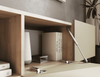 Le meuble TV de la collection DUO se caractérise par un design simple et moderne. Le plateau supérieur de cette variante est réalisé en couleur chêne avec une finition mate, ce qui lui donne un aspect luxueux et unique. Grâce à la fonction push-to-open, vous pouvez facilement ouvrir la porte sans utiliser de poignées ou de boutons de porte.