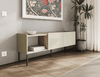 • Finition contrastée – l'association d'une couleur mate et d'un décor en bois naturel confère à ce meuble TV un caractère unique qui s'adapte à différents styles d'intérieur.
