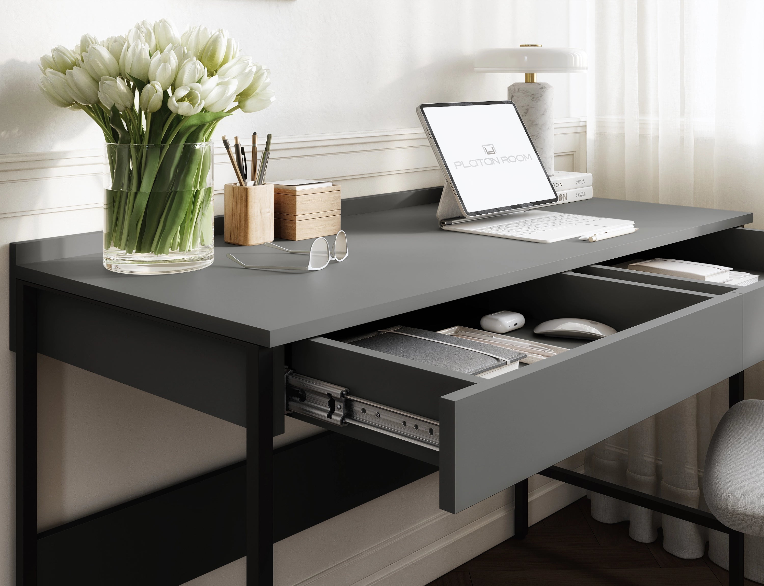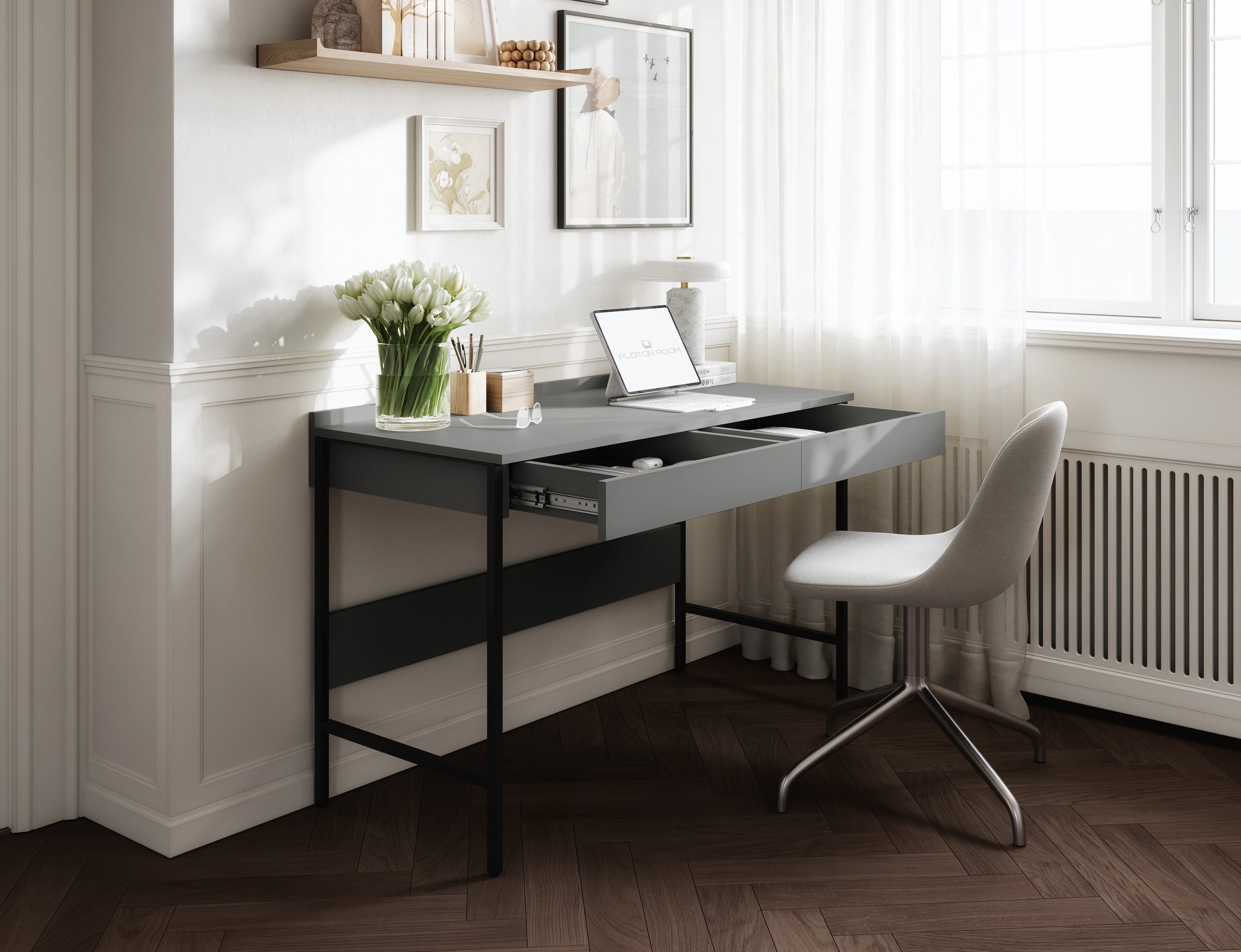 Biurko z metalowymi nogami PORTO to stylowe i funkcjonalne rozwiązanie do nowoczesnych wnętrz. Wyposażone w szufladę z cichym domykiem, łączy elegancki wygląd z praktycznością. Stabilna konstrukcja i loftowy design sprawiają, że doskonale sprawdzi się w biurze, salonie lub gabinecie.