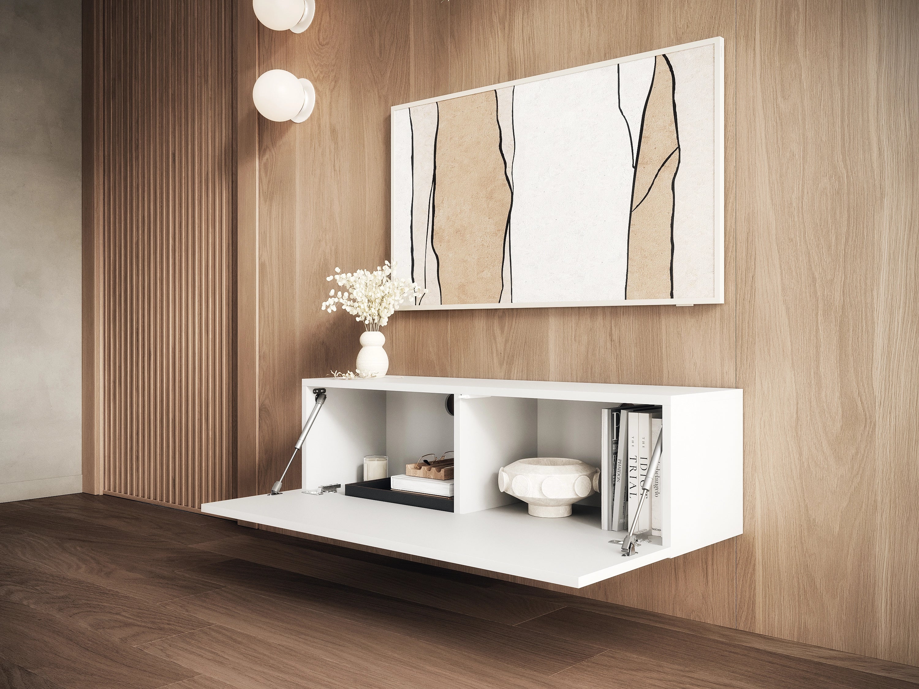 Szafka RTV KIRA to połączenie ponadczasowego stylu z funkcjonalnością, które zachwyci Cię dbałością o detale. Wykonana z wysokiej jakości płyty meblowej, gwarantuje trwałość i elegancję. Jej przemyślany design doskonale pasuje do każdego wnętrza, oferując wygodę i porządek.