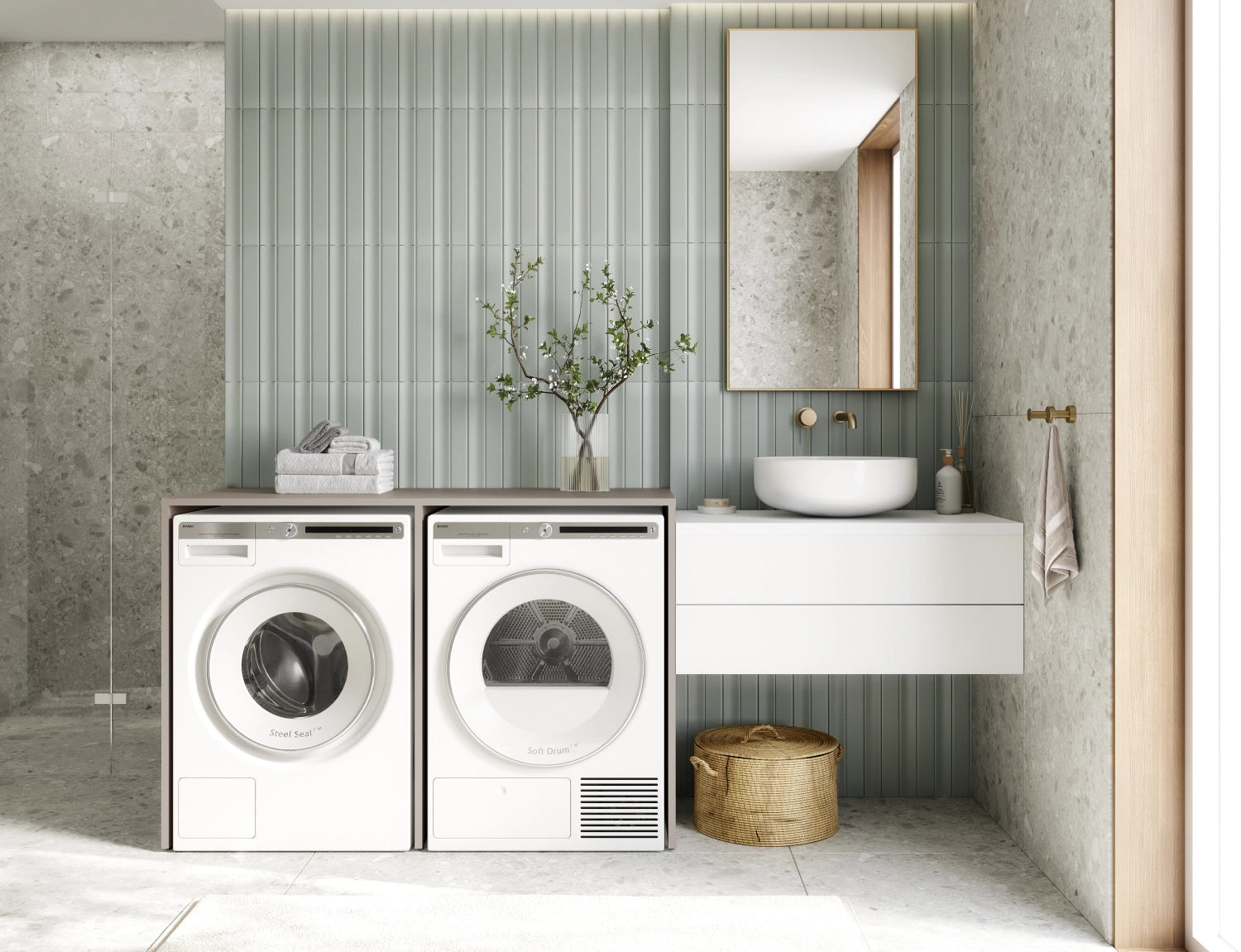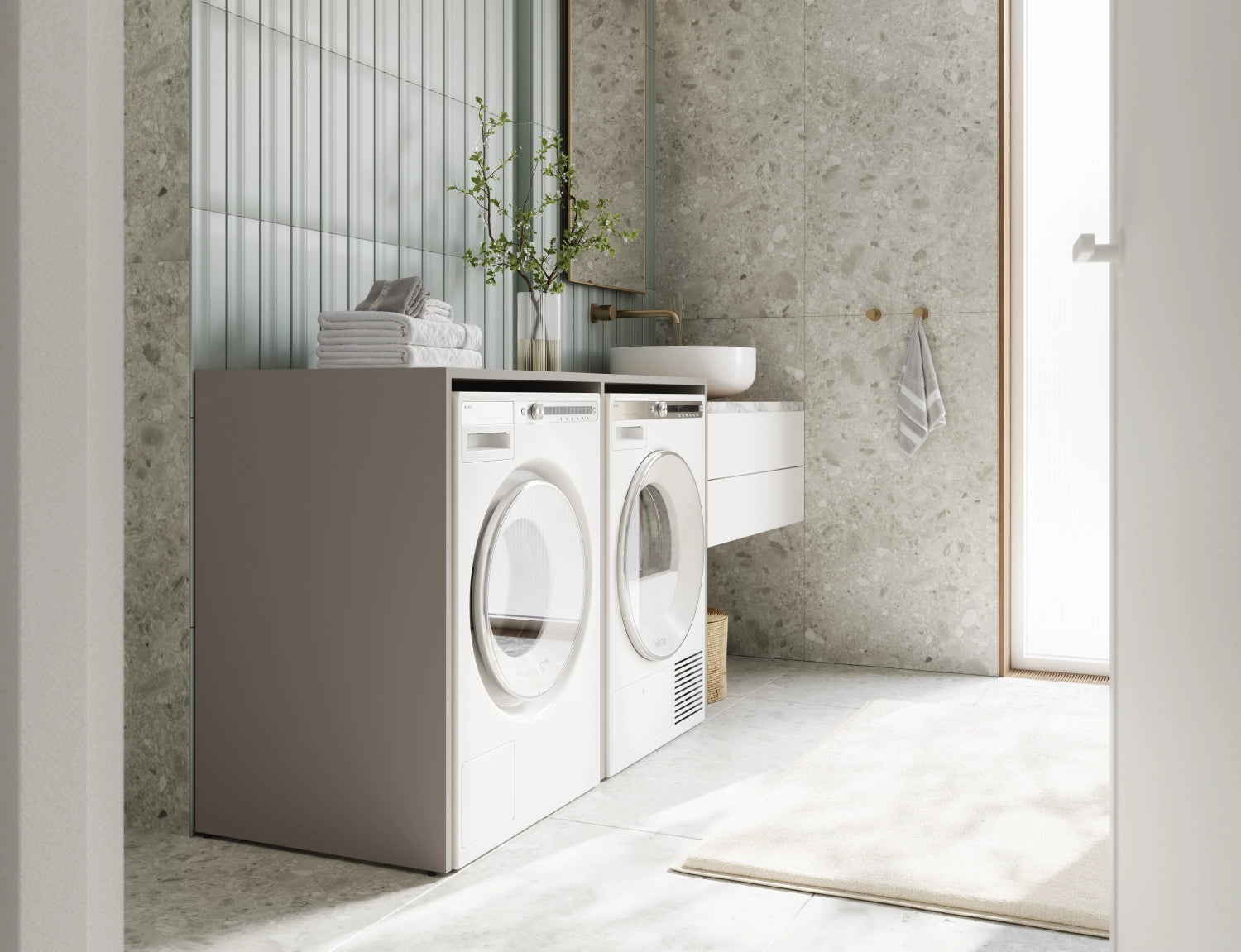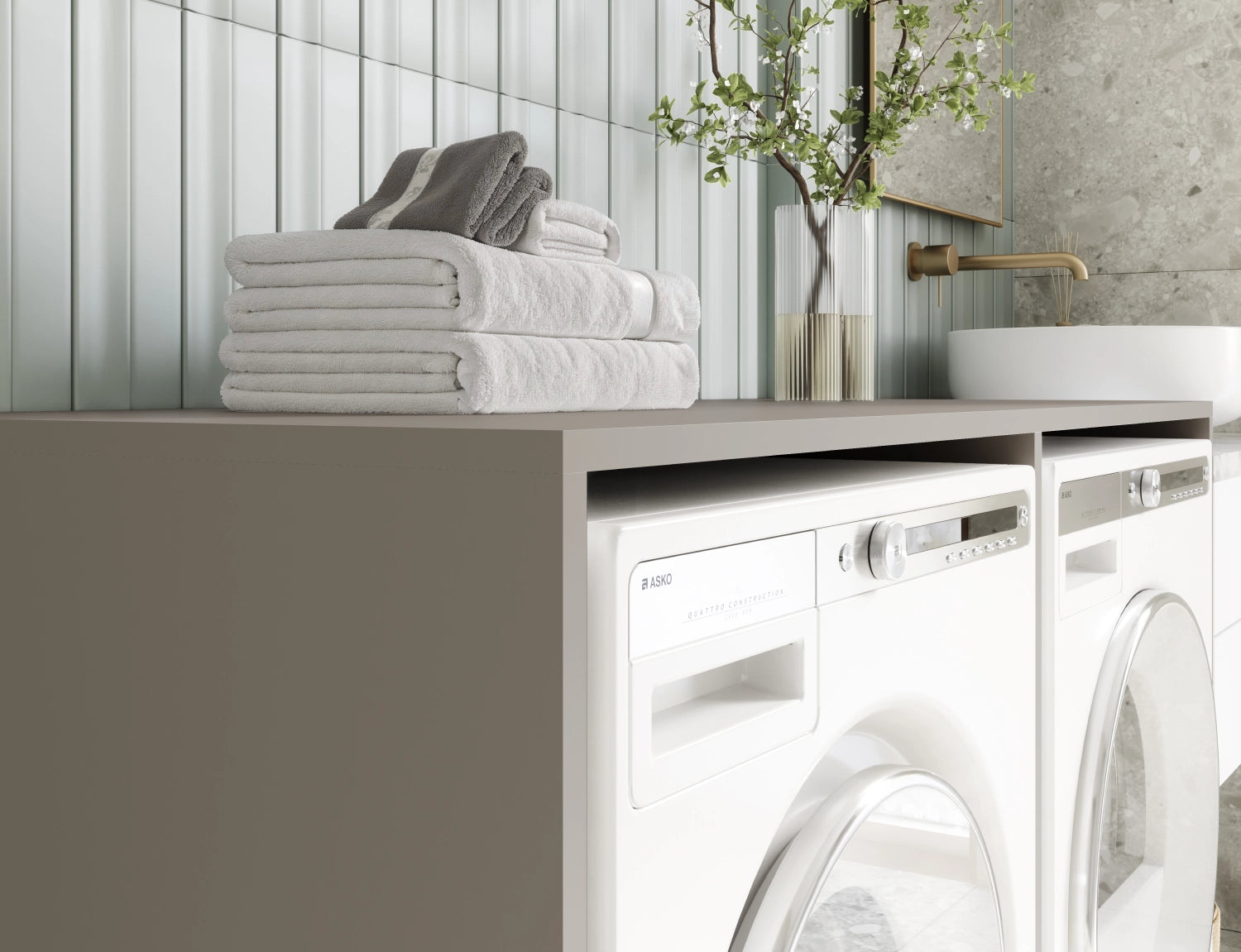 The washing machine and dryer cabinet is available in 7 color versions: white, sonoma oak, anthracite, cashmere, artisan oak, gray clay, golden oak.